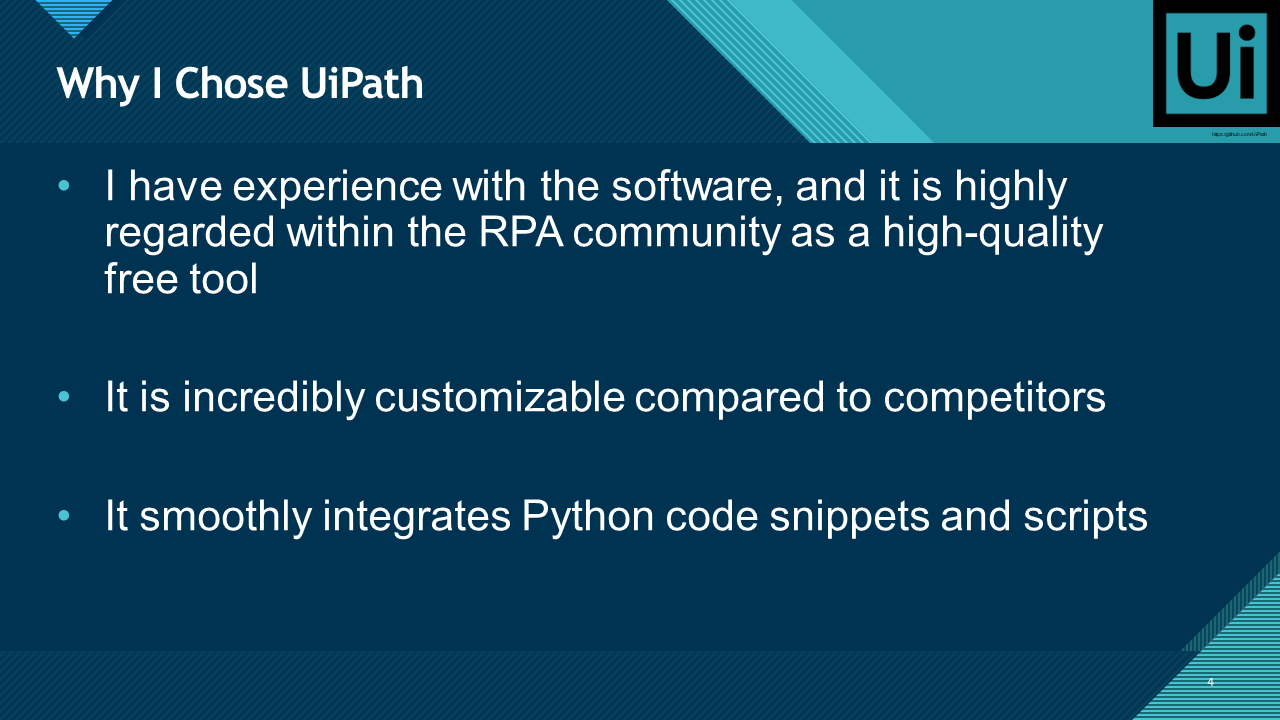 To further strengthen my automation skillset, I built this project using UiPath. While I already have a solid foundation in Microsoft PowerAutomate, I wanted to expand my expertise and ensure a well-rounded proficiency across leading automation platforms.